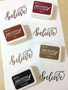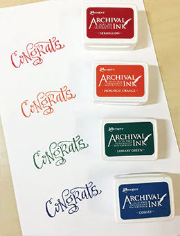Archival Inks provide long lasting stamping results that are permanent on many surfaces. Get a crisp image that doesn’t bleed over water based inks, markers, acrylic paint, water colors, and more.